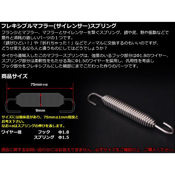 75mm マフラー サイレンサー ジョイント スプリング フレキシブル フック シルバー TE0039