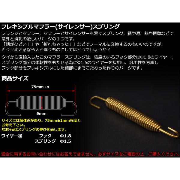 75mm マフラー サイレンサー ジョイント スプリング フレキシブル フック ゴールド TE0041
