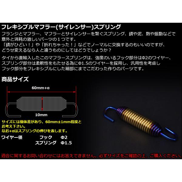 60mm マフラー サイレンサー ジョイント スプリング フレキシブル フック ゴールド&焼チタンカラー TE0046