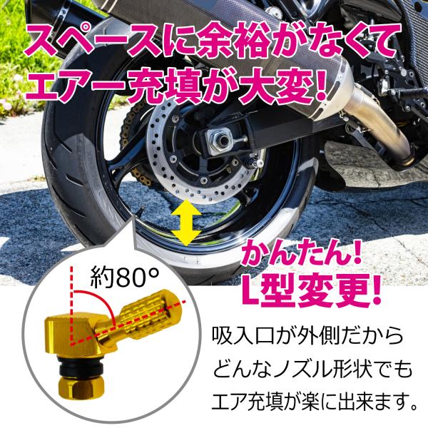 エアバルブ L型 80° 2個セット アルミ削り出し チューブレス カスタム バイク 原付 タイヤ ホイール 汎用