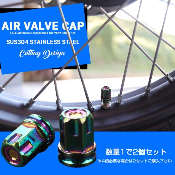 エアバルブキャップ タイヤバルブキャップ ステンレス製 カットデザイン 汎用 焼き緑色 TH0521