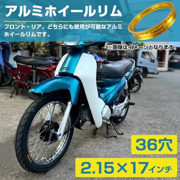 【PCD2.15×17インチ】汎用 レーシング ホイール アルミ リム 黒/金/銀 36穴 36H カブなどにおススメ!