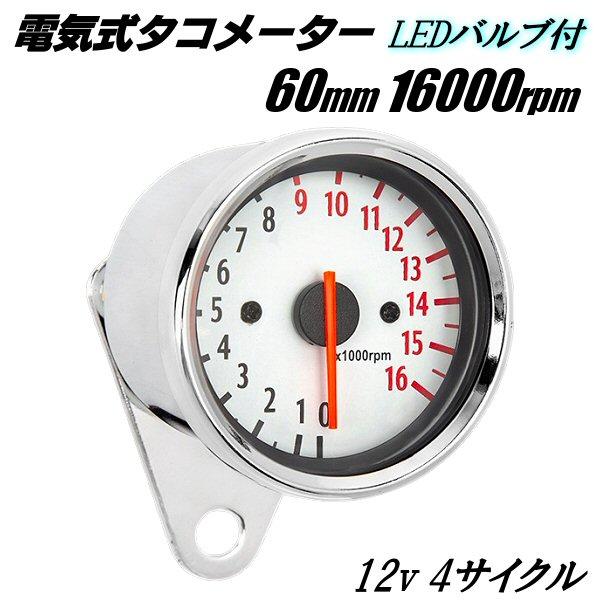 バイク 電気式 タコメーター 60mm 16000RPM 単気筒 4サイクル おまけ LED T5 バルブ付 モンキー ゴリラ カブ 汎用 12V ホワイトパネル