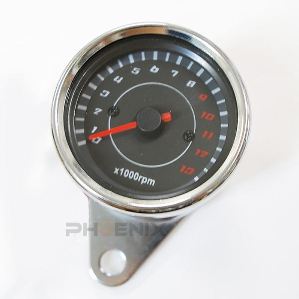 バイク スクーター 二輪 バギー ATV トライク 12V LED 汎用 電気式 13000rpm タコメーター 黒/メッキ