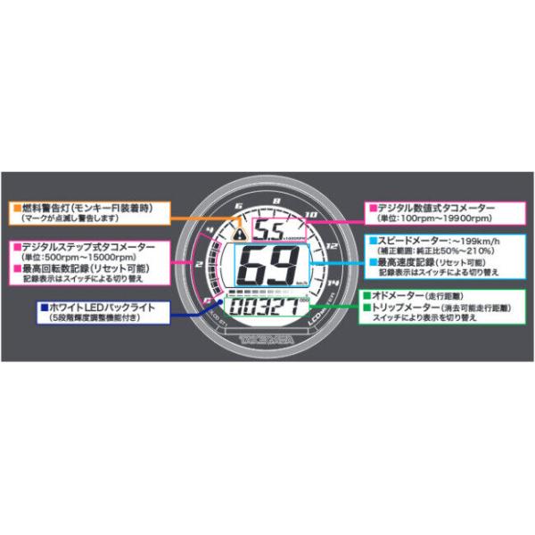 SP武川 SPタケガワ DタイプLCDスピード&タコメーター モンキー エイプ タイプD エイプ100 エイプ50 ゴリラ HONDA ホンダ メーター・インジケーター関係 電装系