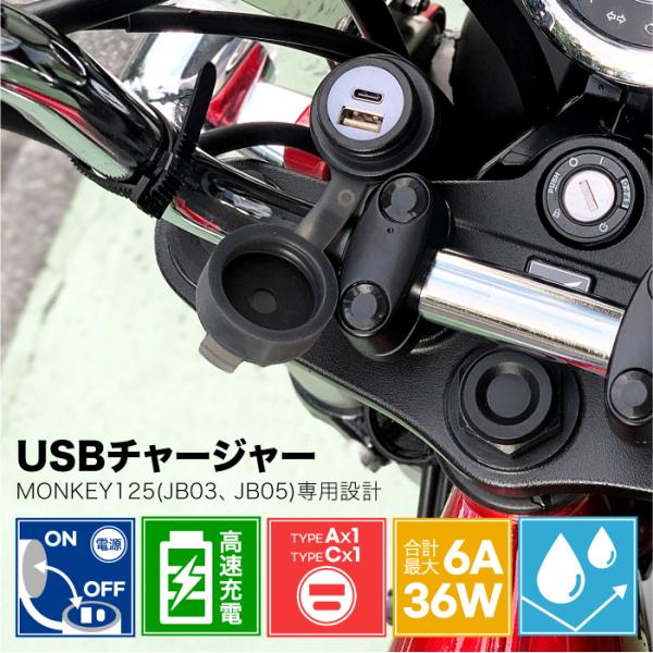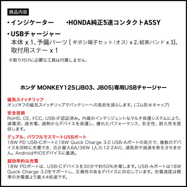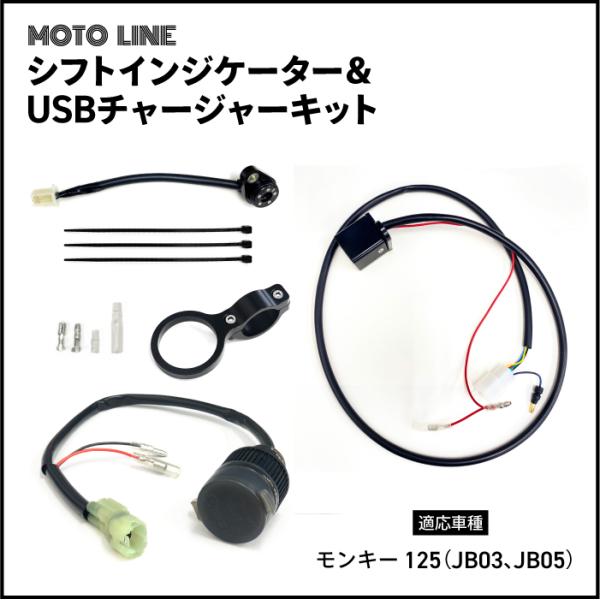 ホンダ モンキー MONKEY125(JB03 JB05) シフトインジケーター ハーネスキット + USBチャージャー(クランプ式) MOTOLINE HONDA