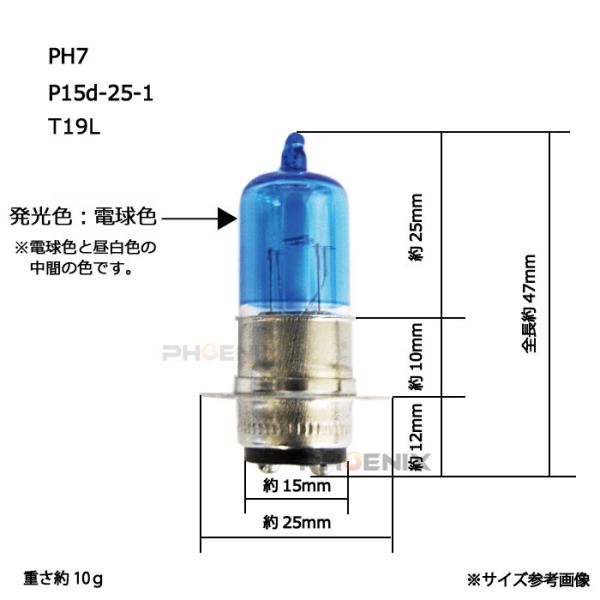 ヘッドライト ブルー ハロゲン バルブ PH7 P15D-25-1 T19L 12V 35W ショート タイプ 球 バイク 原付 汎用 電球色