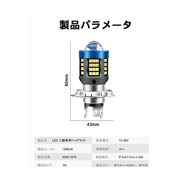 バイク用 H4 Lo イエロー × HI ホワイト 2色 切り替え LED バイク ヘッドライト バルブ 白 黄色