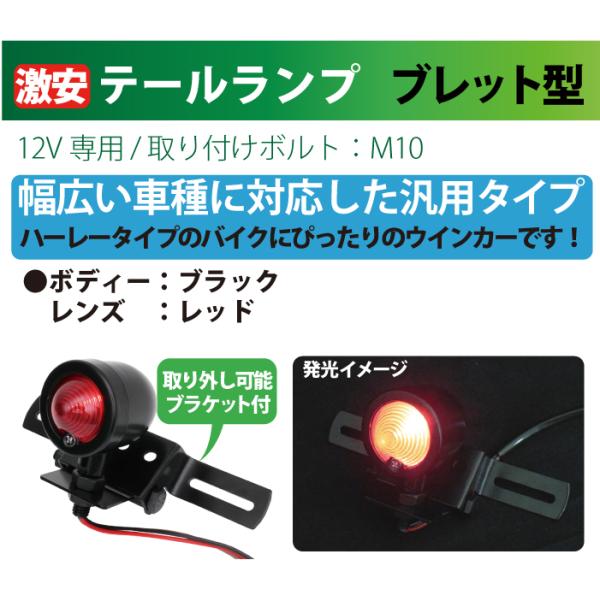 テールランプ バイク ブラック 汎用 M10 ハーレー アメリカン スティード ビラーゴ