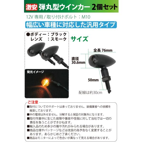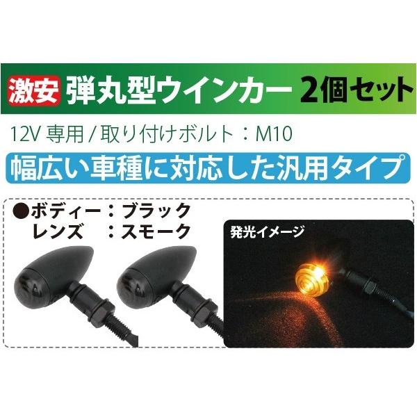 バイク ウインカー 2個セット スモークレンズ ブレットウインカー 砲弾型 ブラック スモーク 汎用 ウィンカー アメリカン リアウインカー