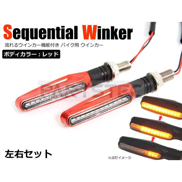 バイク LED 流れる ウインカー シーケンシャル バーウインカー 2個 汎用 レッド グロム エイプ モンキー ゴリラ YBR125 Z125 / 134-18 A-2