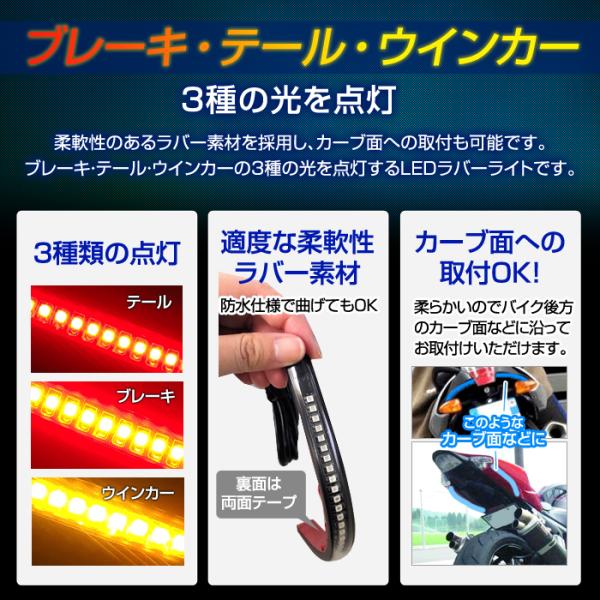 バイク用 LED テールモジュール (1灯入) 12V テール ウインカー ブレーキ ラバー素材 曲線 曲がる テープ 2輪用 D−1615
