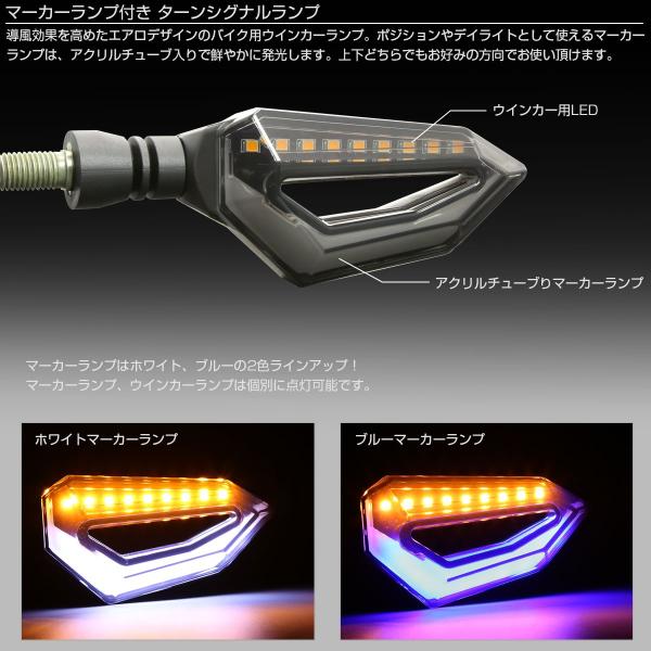 汎用 LED ウインカー エアロデザイン アクリルチューブ ホワイト マーカーランプ付き 取り付けネジ部 M10 2個セット F-297