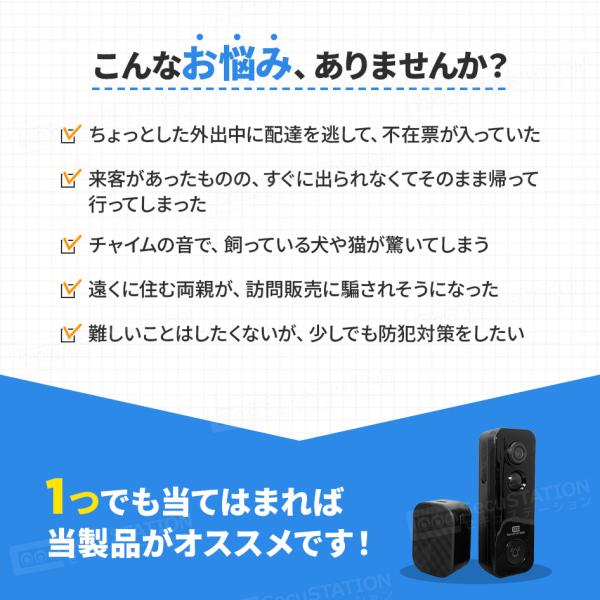 インターホン ドアホン ワイヤレスチャイム 玄関 ドアベル カメラ付き 工事不要 防水 ピンポン 呼び鈴 センサー 介護 無線 スマホでドアホン MI73(A)