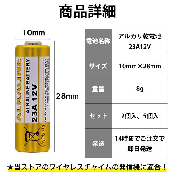 アルカリ乾電池 23A 12V ワイヤレスチャイム 送信機用電池 23a12v アルカリ電池 2個入 5個入