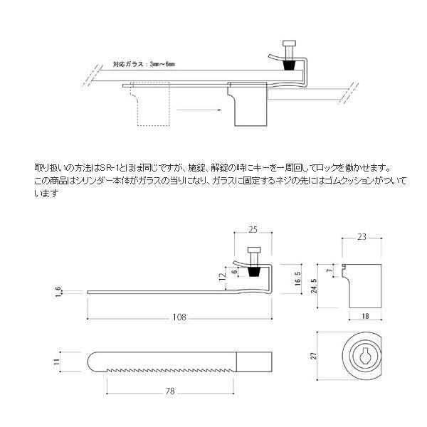 スライドロック スライド錠 引き戸用鍵 後付け用 MR-1 同一鍵