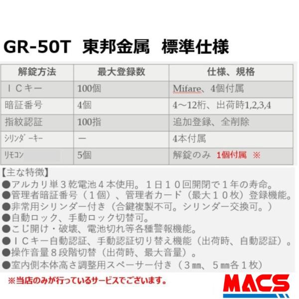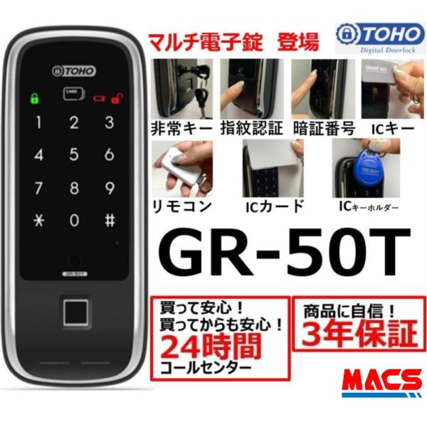 GR-50T リモコン1個付き 室内機横型 マルチ解錠電子錠 (指紋,非常キー,暗証番号,ICキー,リモコン) サービス満載!領収書は注文履歴からDL可 東邦金属 TOHO