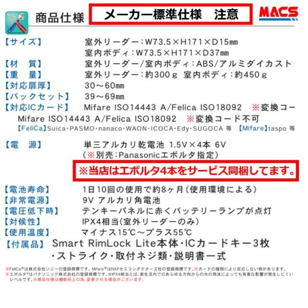 あすつく スマートリムロックライト Smart RimLock Lite エボルタ4本同梱 FUKI INAHO 指紋・タッチパネル非接触IC式 電気錠 なぞり暗証番号入力 機能付き