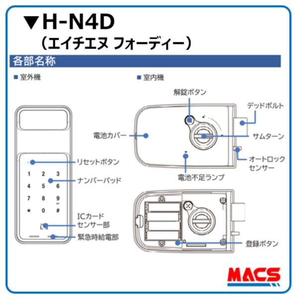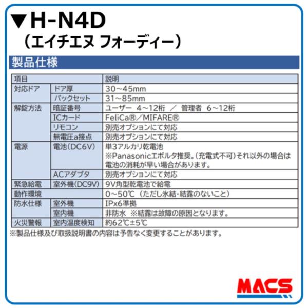 H-N4D エイチエヌ フォーディー 開き戸用 電子錠 暗証番号/ICカード対応型 3種の解錠ICサービス コスパ重視 の 安心 電子錠 相当品 N-TOUCH GRT-301T ES-B10