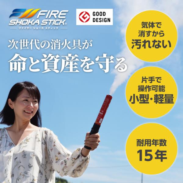 FIRE SHOKA STICK(ファイヤーショーカスティック)100秒 カラーセレクション(アッシュグレー) 耐用年数15年 次世代の消火器具 家庭用 小型 火災 防災用品