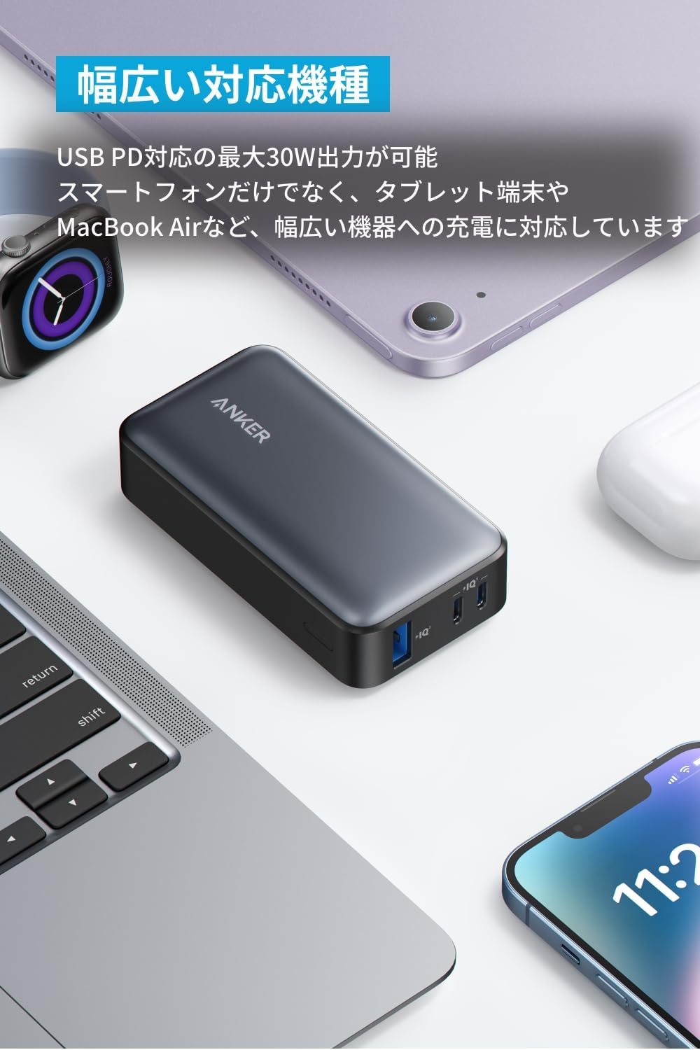 Anker Power Bank (10000mAh, 30W)(モバイルバッテリー 10000mAh 30W出力 大容量 LEDディスプレイ搭載)USB Power Delivery