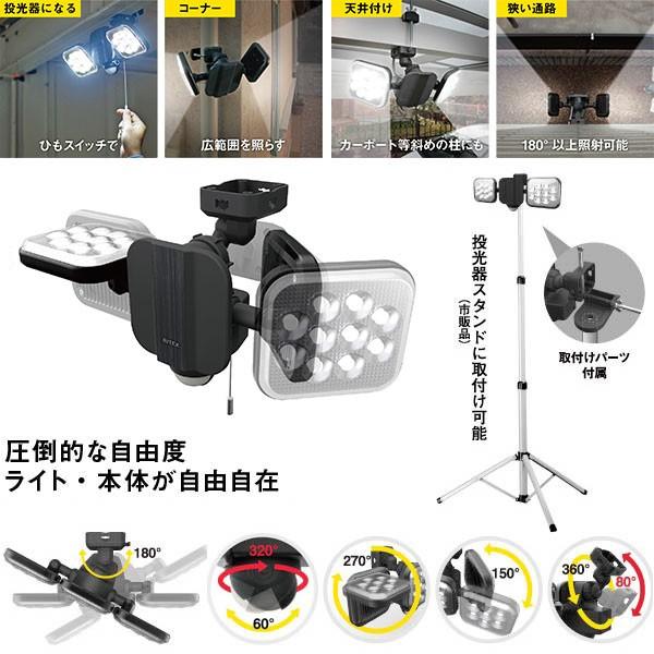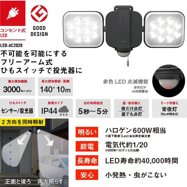 ムサシ RITEX LEDセンサーライト LED-AC2028 14W×2灯 スイッチ付 ワイド フリーアーム コンセント 屋外 防水 防犯 明るい ライテックス 「送料無料」