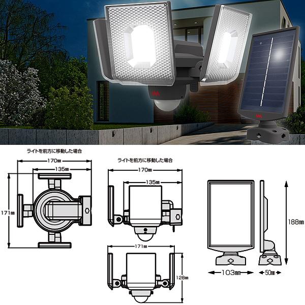 ムサシ RITEX LED センサーライト 7.5Wx3灯 S-340L スライド型 ソーラー 屋外 太陽光 USB充電 人感 明るい 防犯 防水 「送料無料」