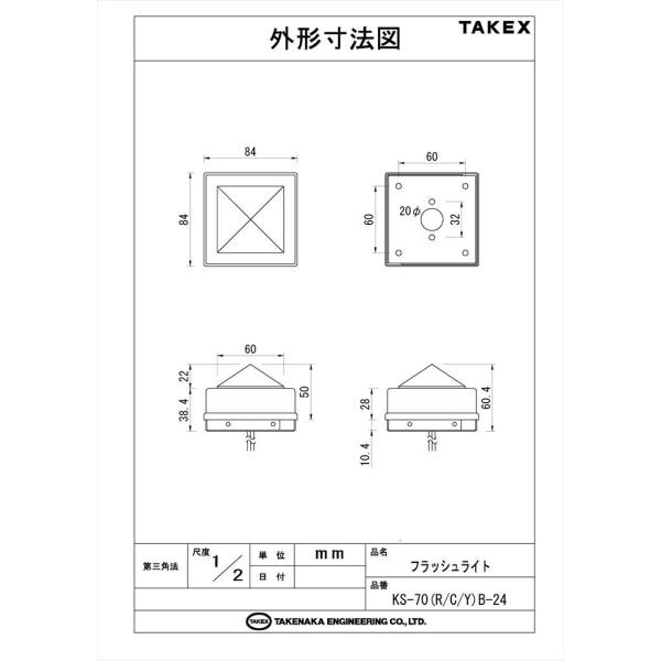 【KS-70CB-24】 フラッシュライト DC24Vタイプ クリアー キセノンバルブ TAKEX 竹中エンジニアリング