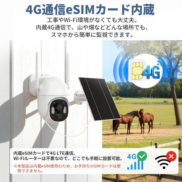 お客様の声募集!期間限定の赤字価格! 2K 300万画素 防犯カメラ 電源不要 Wi-Fi不要 工事不要 ソーラー充電パネル付き PIR人感センサー 夜間カラー
