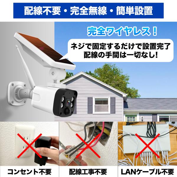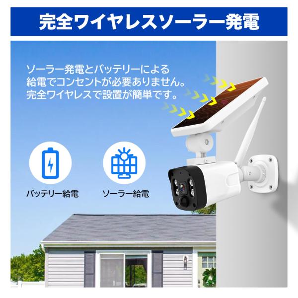 防犯カメラ 屋外 Wifi ソーラー一体型 赤外線暗視 人感センサー センサーライト付き 家庭用 400万画素 充電式 電源不要 監視カメラ 動体検知 双方向会話 SD録画