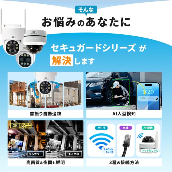 防犯カメラ 屋外 家庭用 防犯灯 パンチルト 夜間撮影 スマホ 遠隔監視 ワイヤレス セキュガードD360 Dズーム DUFO DF45 DG48 DE55(A)