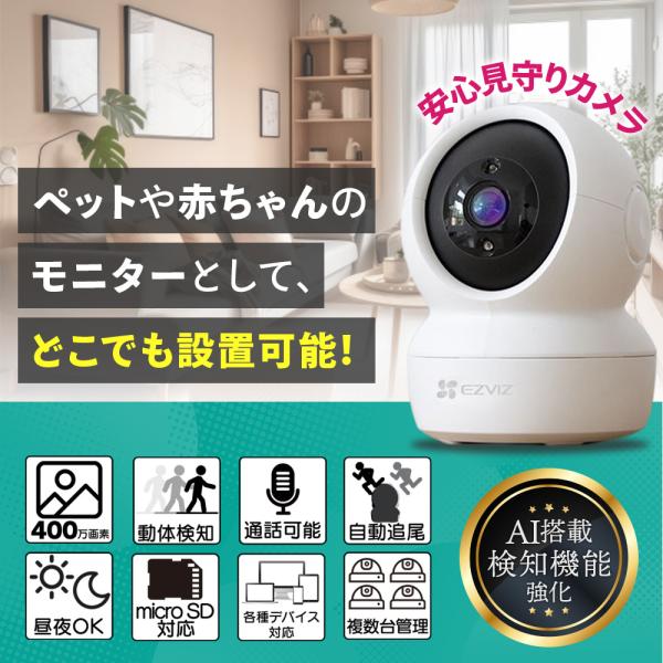 防犯カメラ C6N 4MP 4台セット スマホ連動可 小型 屋内 ペットカメラ 監視カメラ 見守りカメラ ベビーカメラ 室内 パソコン 暗視撮影 双方向 通話 高画質