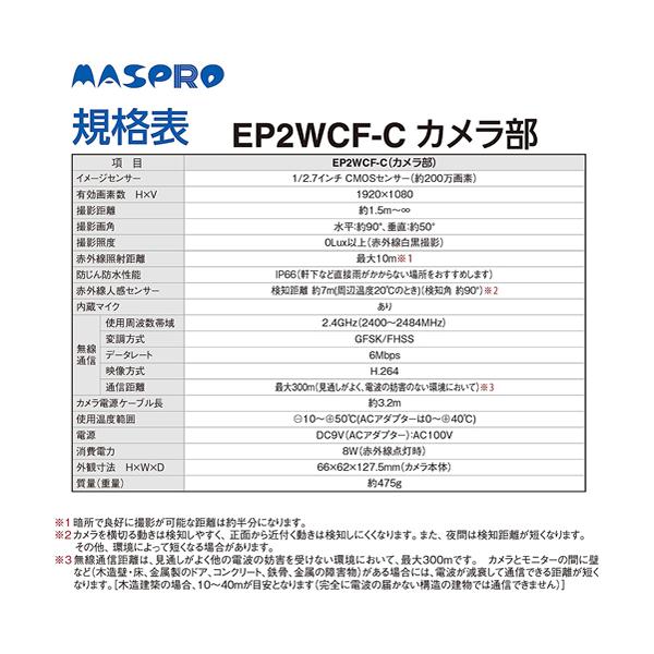 EP2WCF-C マスプロ電工 増設カメラ 防犯カメラ モニター&ワイヤレスHDカメラセット用 フルハイビジョン