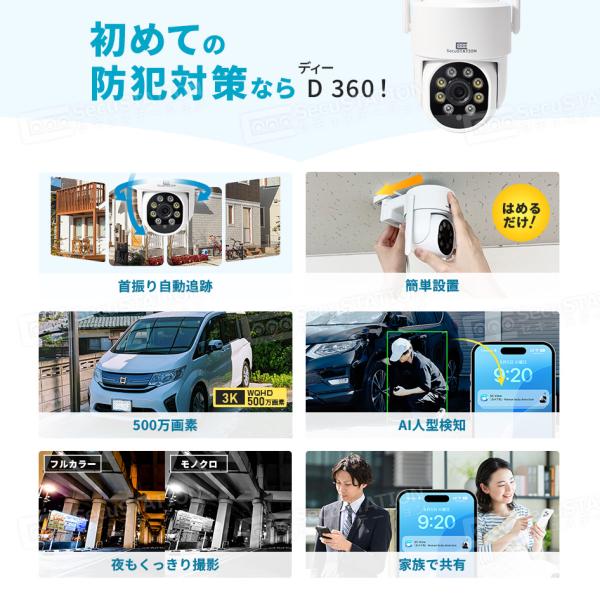 防犯カメラ 屋外 家庭用 防犯灯 パンチルト 夜間フルカラー スマホ 遠隔監視 ワイヤレス 5Ghz セキュガードD360 DF45