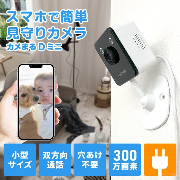 見守りカメラ ペットカメラ ベビーモニター 犬猫 家庭用 スマホ 夜間撮影 動作検知 屋内カメラ ワイヤレス 小型 双方向通話 カメまるDミニ DC23
