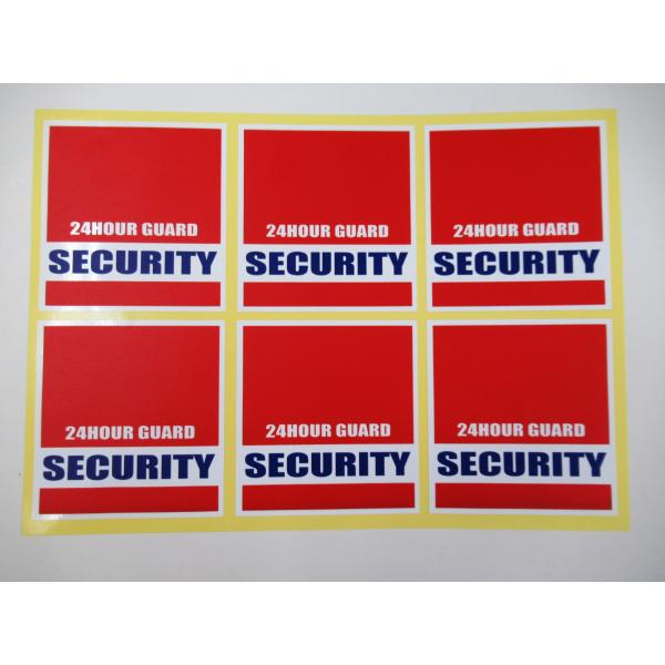 24時間セキュリティ シール ステッカー 中サイズ 赤 四角 6枚セット 英語表記 防犯 空き巣対策 ダミー 防犯カメラ録画中 日本製423