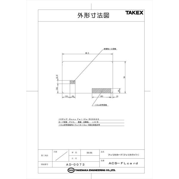 【ACS-FLcard】 FeliCaカード(白無地) TAKEX 竹中エンジニアリング