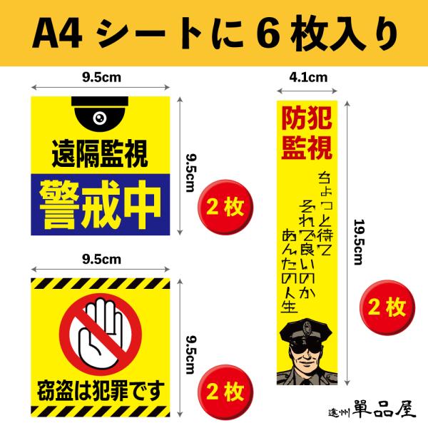 単品屋防犯ステッカー【送料無料】無人販売所・屋外作業場などに 屋外内用:耐光/耐水/耐候 高品質 剥がしても綺麗な強粘着再剥離糊使用