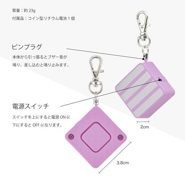 アスカ 防犯ブザー パープル GE076V 反射 大音量 防犯 災害 小学生 子ども 大人 女性 通勤 痴漢対策 小型 軽量 ランドセル取付 ナスカンフック 送料無料