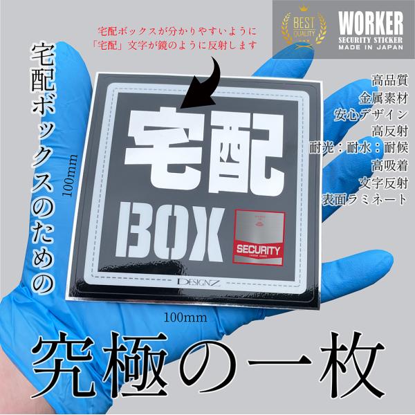 【DESIGNZ】ワーカーメッセージステッカー 「宅配ボックス」(屋外内用:耐光/耐水/耐候) 反射するミラーアルミ 金属素材で色褪せにくく長持ち 日本製