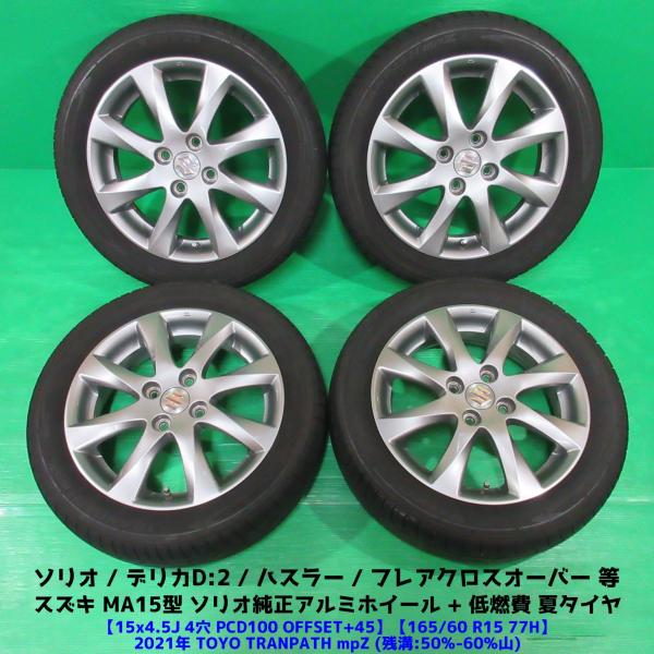 MA15型 ソリオ純正 165/60R15 夏タイヤ 50%-60%山 TOYO TRANPATH mpZ 4本 4穴PCD100 4.5J +45 ハスラー デリカD2 スズキ純正 中古新潟