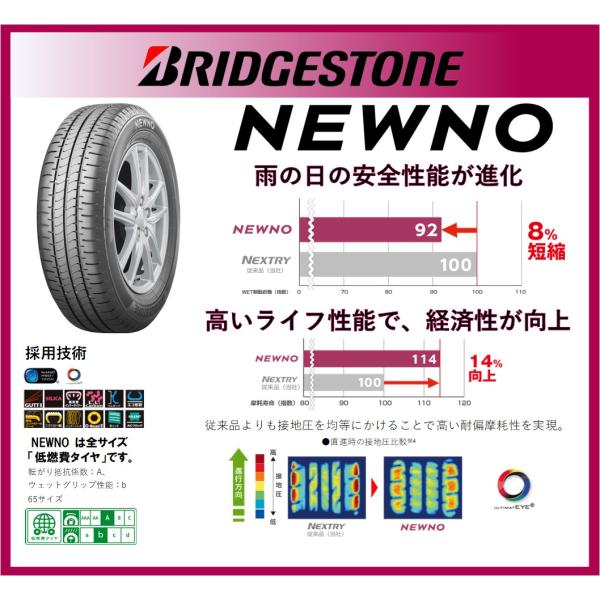 《タイヤ交換作業込み》BRIDGESTONE NEWNO 195/65R15 91S サマータイヤ 4本セット ブリヂストン