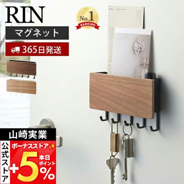 山崎実業 公式 リン ホルダー付きマグネットキーフック RIN 磁石 キーフック 鍵置き 鍵 カギ ホルダー 印鑑 ドア 玄関 木目 2729 2730