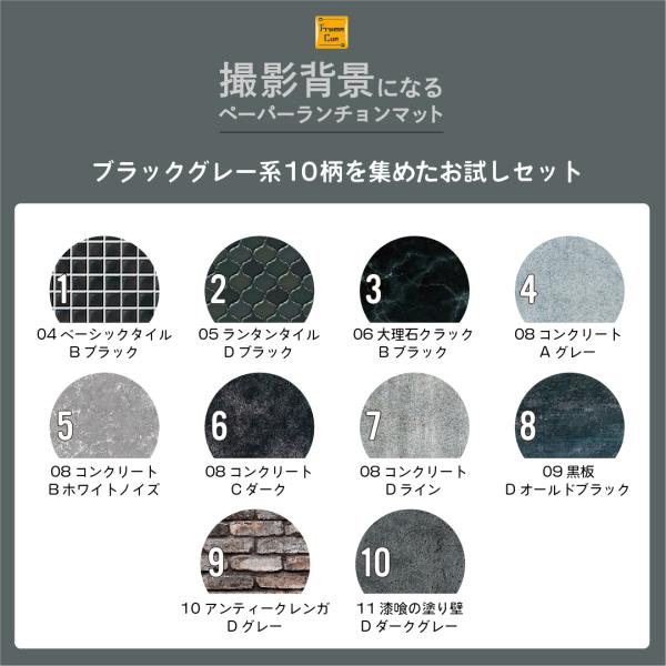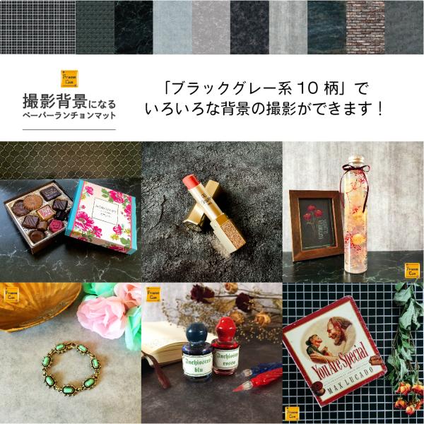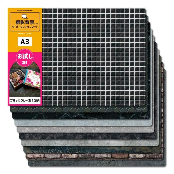 FrameCue ブラックグレー系10柄お試しセット (10柄×各1枚)撮影背景になるペーパーランチョンマット A3 背景紙 ペーパーランチョンマット 撮影 バックペーパー