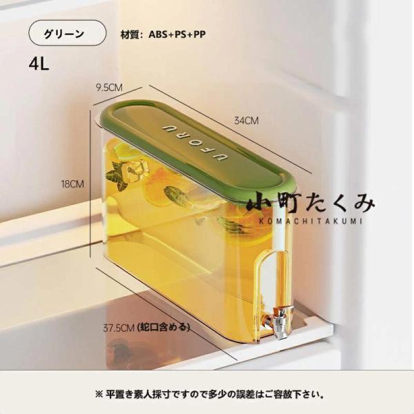 冷水筒 ピッチャー 横置き 4リットル 蛇口付き 麦茶ポット お茶ポット 4L 大容量 冷蔵庫ポット 耐冷 洗いやすい 飲料水 お茶 炭酸 お茶ボトル 冷蔵庫 ドリンクボ
