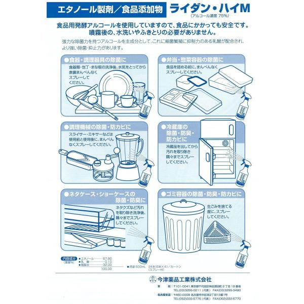[数量限定] 食品添加物アルコール ライダンハイM [1L×12本入] [度数75%]エタノール製剤 ノズル1P付