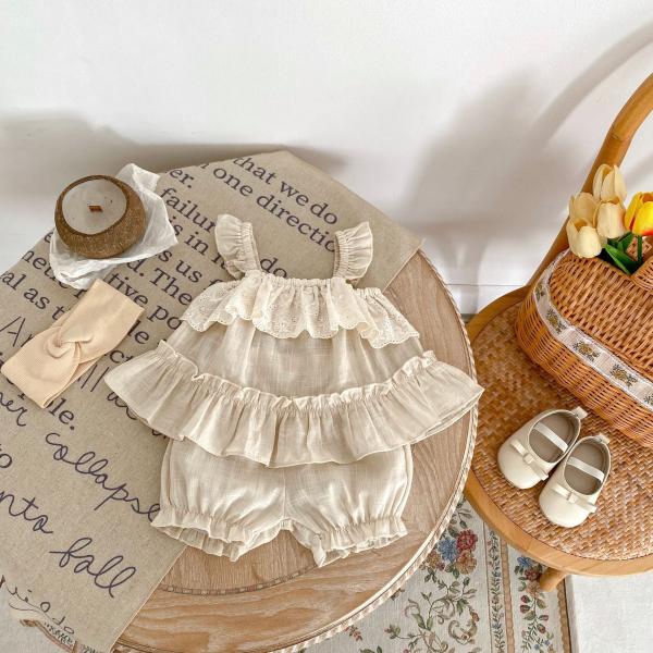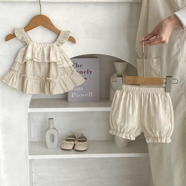 ベビー服 女の子 夏 赤ちゃん 赤ちゃん服 服 涼しい セットアップ ベビー 女の子 レース ベージュ ブルマ パンツ コットン 綿 出産祝い