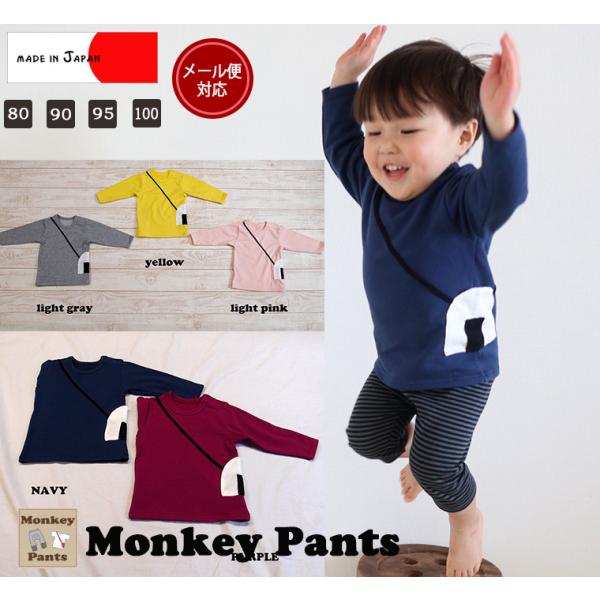 子供服トップスおにぎりミニ裏毛ポシェット付き長袖Tシャツ(80cm90cm95cm100cm)保育園ベビー服男の子赤ちゃん
