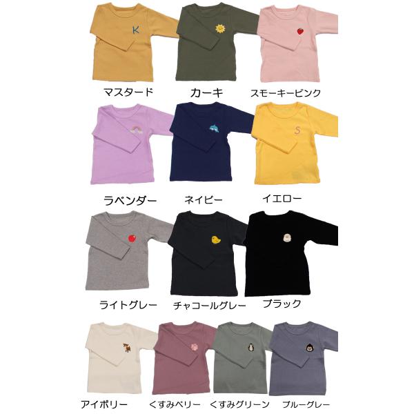 ワンポイントロゴ刺繍入り 伸縮性抜群スパンフライス無地長袖Tシャツ(80cm 90cm 95cm 100cm)2998