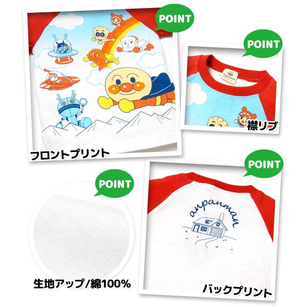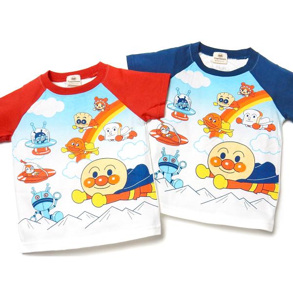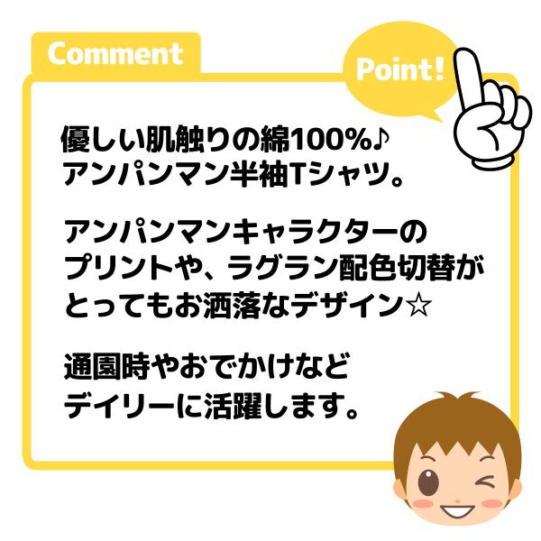 送料無料 男児 ベビー 綿100% 半袖 Tシャツ アンパンマン ラグラン 配色切替 バックプリント ベビー服 男の子 80cm 90cm 95cm iw-0799 メール便対応